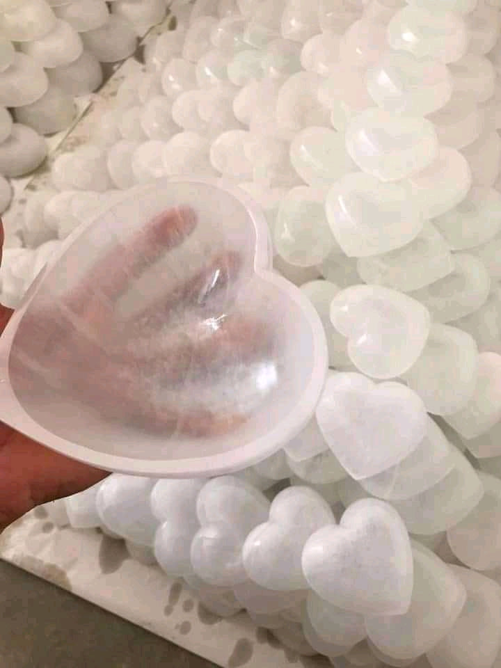 Apportez douceur et élégance à votre décoration avec ce bol en forme de cœur, sculpté à la main dans la sélénite marocaine naturelle. Idéal comme vide-poche, présentoir à bijoux ou objet de décoration zen.